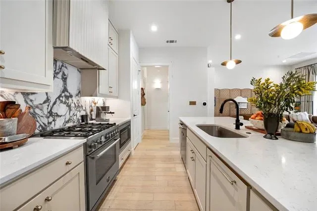Luxury living meets a modern urban lifestyle in this stunning townhome located in the highly sought-after Main 7 community in the heart of Arlington. From top to bottom, this home is filled with designer upgrades that surpass even newer builds, offering exceptional style and sophistication throughout. Natural light pours in through oversized windows, highlighting the open-concept layout and beautiful wood flooring throughout, including hardwood floors in the downstairs bedrooms.