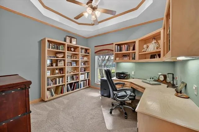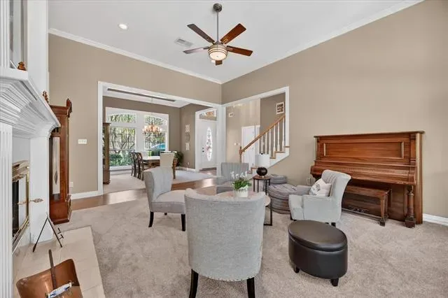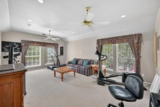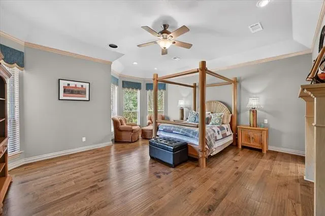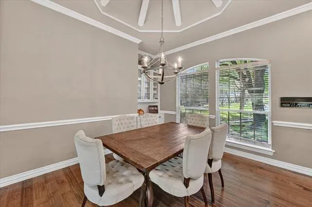 Welcome to this stunning custom-built home with a pool in the highly desirable Martha’s Vineyard community, where style, comfort, and functionality come together beautifully. Featuring 4 spacious bedrooms, a dedicated office which could be a 5th bedroom, and formal living and dining rooms, this home offers an ideal layout for both everyday living and entertaining. The open-concept floor plan is enhanced by engineered hardwood flooring that flows throughout the main living areas. The large family room is filled with natural light and features see through fireplace connected to the formal living. The open concept seamlessly connects to the gourmet kitchen, complete with granite countertops, abundant cabinetry, a center island with gas cooktop, and stainless steel double ovens with a built-in microwave. The primary suite is a private retreat, showcasing bay windows overlooking the backyard, dual vanities, a relaxing garden tub, separate shower, and a generous walk-in closet. A secondary bedroom and full bath downstairs provide flexibility for guests, while the private office is perfect for working from home. Upstairs features an additional living area or game room, along with two bedrooms connected by a convenient Jack-and-Jill bath. Step outside to your backyard oasis with lush landscaping, a sparkling pool, and a covered patio ideal for outdoor entertaining. The home sits on almost half an acre and backs to a tranquil creek and greenbelt and another wooded lot, offering added privacy and scenic views. This exceptional property combines elegance, space, and a prime location—ready to welcome you home.