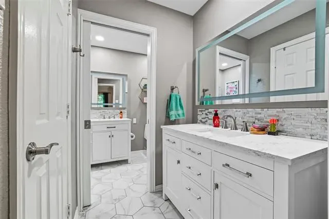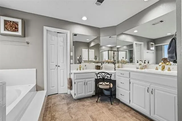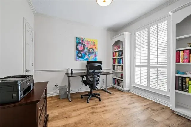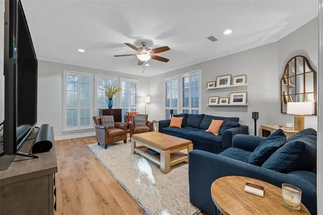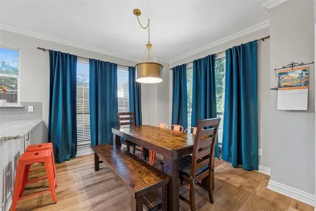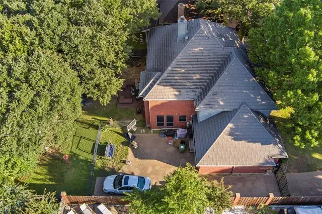 Stunning home located in the coveted neighborhood of Martha’s Vineyard is family’s dream! Entering this impressive home, you are welcomed with vaulted ceilings and a stunning double-sided fireplace that adds warmth and charm to the main spacious living spaces. This home offers a large dining room and office with built-in cabinets that is the perfect work from home space. Each room is furnished with elegant plantation shutters. A beautiful updated kitchen with granite countertops and stainless steel appliances, gas cooktop, double ovens and generous cabinetry make this a chef’s dream. A breakfast area with views of the backyard is perfect for entertaining next to the large flex room that is a perfect media room, game room for a second living area. First floor also offers two half baths and a large utility room. Upstairs the primary suite offers a jetted garden tub, walk-in shower, dual sinks and large walk-in closet. Upstairs has three additional bedrooms each having large closets and a large updated bathroom. Metal roof, electric gate and a rear entry garage with a walk-in attic & great storage throughout are additional features for the future homeowners to enjoy. Step outside to your private, shaded backyard retreat complete with a wrought iron fence that is perfect for relaxing or entertaining. This home was designed with function and comfort in mind and is conveniently located in desirable South Arlington near top schools, parks and shopping. Don’t miss this beautiful home and all it has to offer!