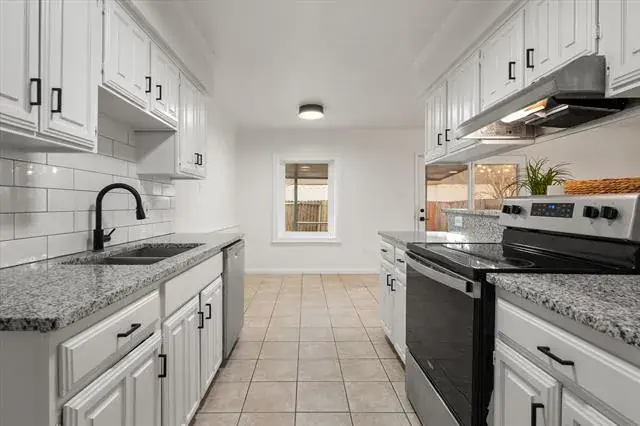 Welcome to this inviting 3 bedroom, 2 bath home in the quaint Mayfield Meadows neighborhood within Arlington ISD. Nestled on a .16-acre lot with mature trees, this charming home offers comfort and thoughtful updates throughout. A cozy fireplace anchors the living area, creating a warm and welcoming place to gather. The kitchen was refreshed in 2024 with granite counters, stylish tile backsplash, newer appliances, updated hardware, and modern ceiling fans. Both bathrooms have been beautifully updated as well. The primary bedroom features an ensuite bath and dual closets for added storage and convenience. Laminate and tile floors flow throughout the home—no carpet! Enjoy outdoor relaxation on the covered side patio overlooking the fenced backyard. Located near The Parks Mall area, you’ll love the easy access to shopping, dining, entertainment, and major highways. A wonderful place to call home!