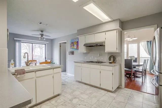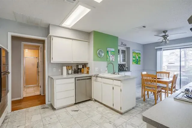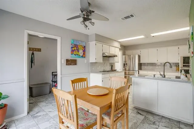 Fantastic Updated 3 Bedroom, 3 Full Bath, 2 Car Garage Contemporary Home on Hill in Beautiful Meadow Park Estates Addition! Property Features: Formal Dining and Living Room with Vaulted Ceilings and Wood Burning Fireplace. Wood and Engineered Wood Floors. Spacious Kitchen with Marble Floors and Breakfast Room with Grilling Porch. Second Living or Den Area. 2 Guest Rooms and Guest Bath. Primary Suite with Dual Sinks, Jetted Tub, Separate Shower, Walk In Closets. Covered Back Patio, Storage Building, Side Entry Garage with Iron Fence and Gate. Perfect Location! Close to River Legacy Park, Stadiums and Airport! A Must See!