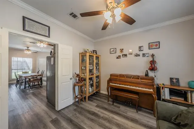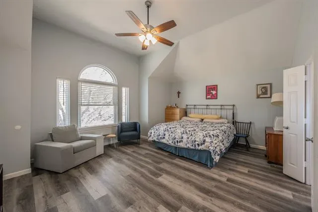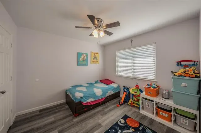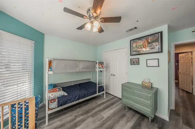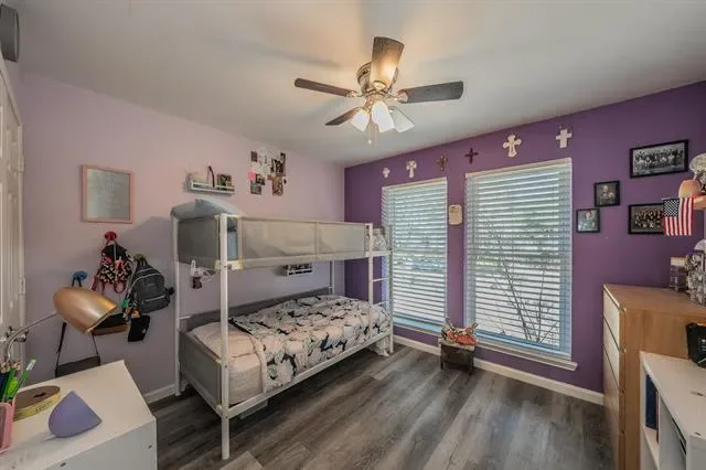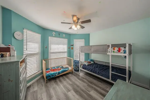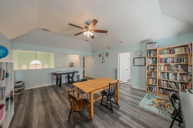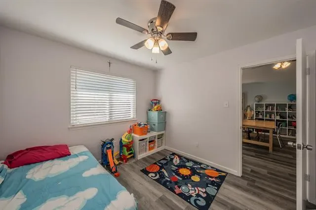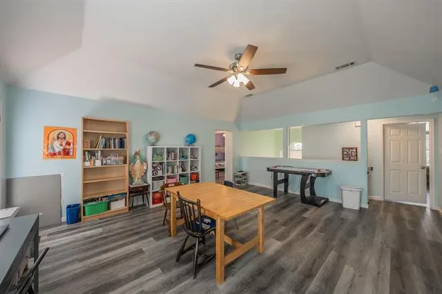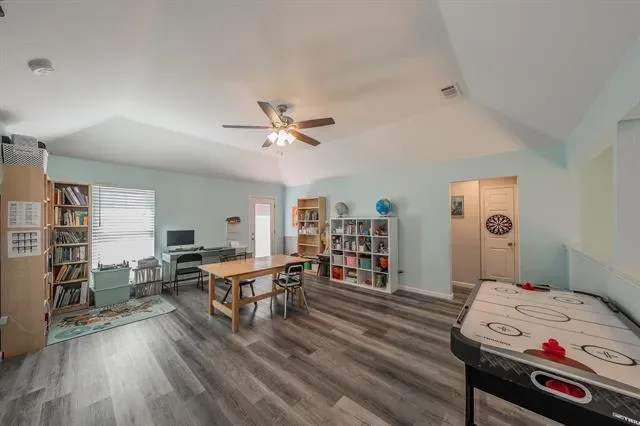 The layout features a private primary suite with an ensuite bath, creating a quiet retreat separate from the secondary bedrooms. Additional bedrooms are well-sized and offer flexibility for guests, home offices, or multi-generational living. Upstairs, a large game room provides a second living area ideal for movie nights, hobbies, or play space. Step outside from the game room onto the upstairs deck, a unique bonus feature ready to be refreshed into a charming outdoor escape.