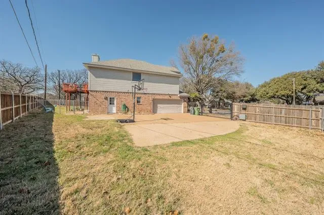 The expansive backyard offers plenty of room to run and entertain. An automatic wrought iron gate adds privacy and security, while the extended concrete pad behind the gate provides extra space for parking, recreation, or storage.