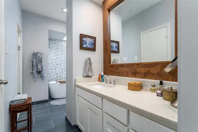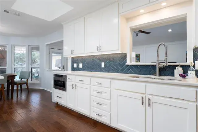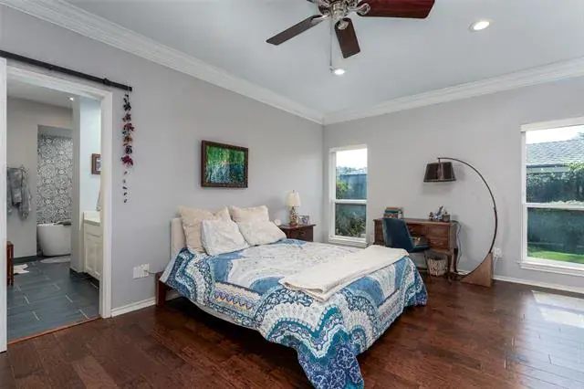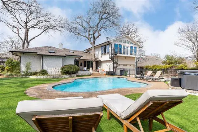 Make this beautifully remodeled home in Millbrook with a pool yours. Located at the top of a hill for a quiet location. Walking in, you will instantly see the finer touches of hardwood floors, granite counters, Viking stainless steel kitchen appliances, and updated windows. Outdoor living with pet-friendly turf that you have been dreaming of! The large master suite is equipped with electric blinds, French doors to the patio, a barn door, a walk-in shower, and a soaking tub! The living room has a wall of built-ins and a skylight. The dining room has a built-in hutch. The oversized downstairs bedroom would be great for a mother-in-law or guest suite, as it sits just down the hall from the large laundry room and garage access, and the upstairs game room is 36×23! Perfect for entertaining, it hosts a half bath and a wetbar for all your guests. Fantastic floorplan with everything downstairs except the gameroom. Gorgeous pool, storage builiding and hot tub.