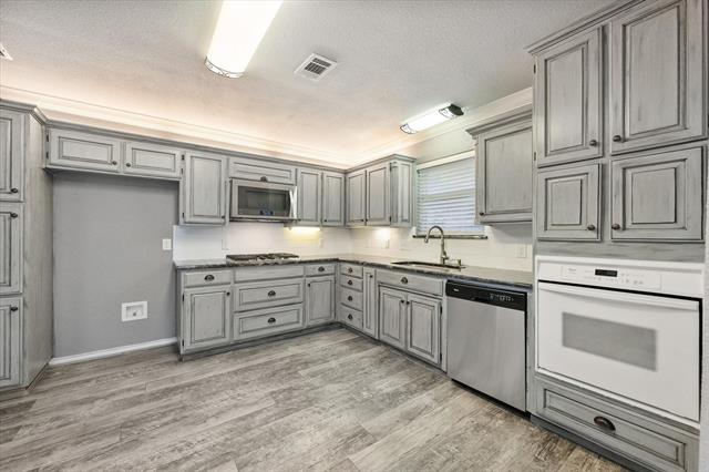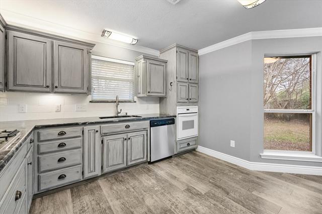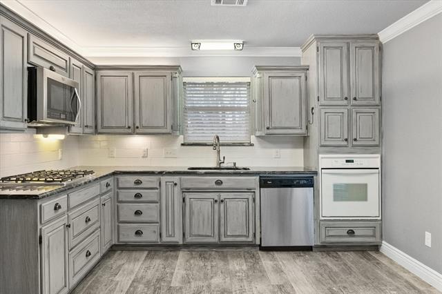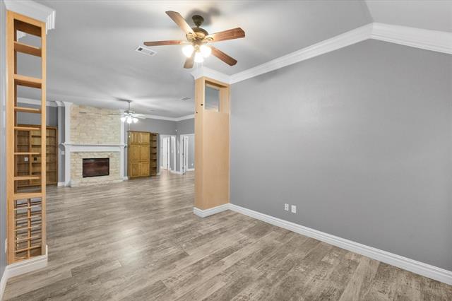 Check out this custom home on quiet culdesac in the heart of Arlington. Protected by many shade trees this charmer features huge living room with a double sided fireplace that warms and makes cozy the primary bedroom as well. In the primary, enjoy his and hers walk in closets, a jetted tub and remodeled walk in shower. Two more spacious bedrooms are located on the opposite side of the home. All have large closets. One room could be an office. The kitchen has lots of prep space, a gas stovetop and ample cabinet space. The formal dining is steps away. To provide more storage, a handy shed sits in the shady backyard, which backs up to a park. There is extra parking under an additional carport.