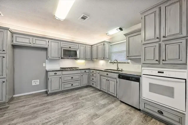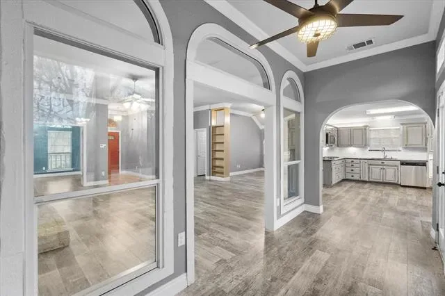 Check out this custom home on quiet culdesac in the heart of Arlington. Protected by many shade trees this charmer features huge living room with a double sided fireplace that warms and makes cozy the primary bedroom as well. In the primary, enjoy his and hers walk in closets, a jetted tub and remodeled walk in shower. Two more spacious bedrooms are located on the opposite side of the home. All have large closets. One room could be an office. The kitchen has lots of prep space, a gas stovetop and ample cabinet space. The formal dining is steps away. To provide more storage, a handy shed sits in the shady backyard, which backs up to a park. There is extra parking under an additional carport.