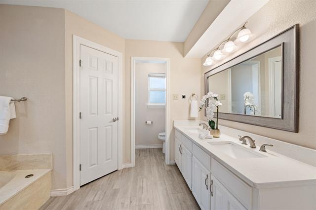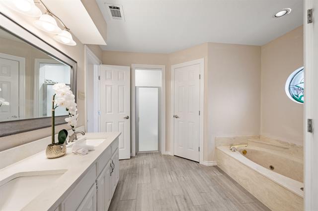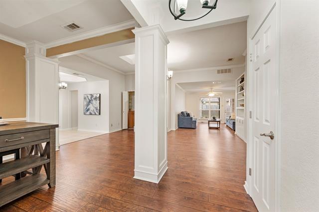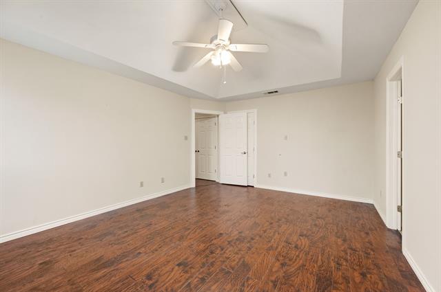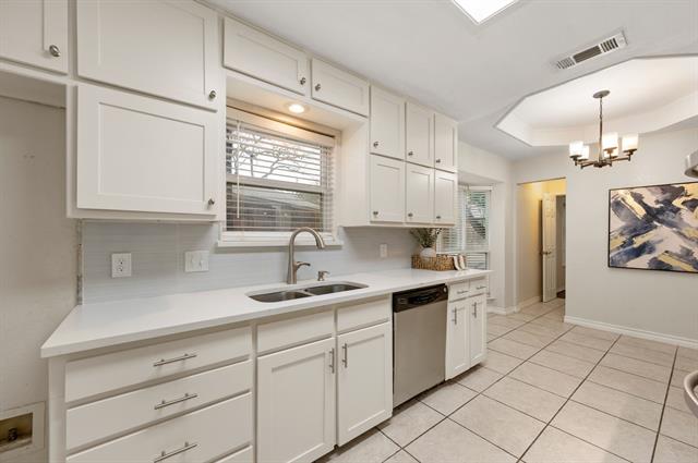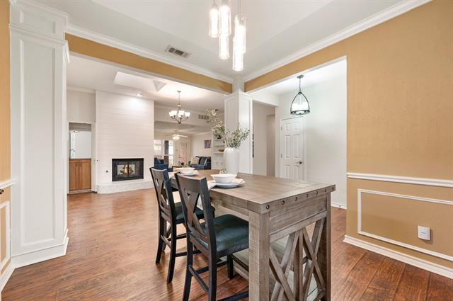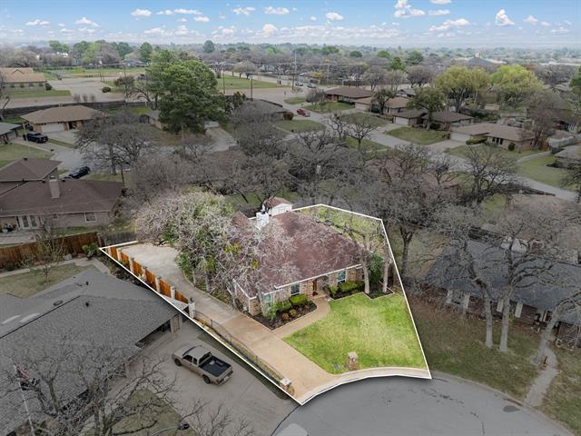 Tucked away on a quiet cul-de-sac street canopied by mature oak trees, this charming brick home offers an impressive amount of space and functionality at an accessible price point in one of Arlington''s most established neighborhoods. With 3 bedrooms, 3 full bathrooms, and a versatile flex space that can easily serve as a 4th bedroom, home office, playroom, or second living area, this home adapts to wherever life takes you. The floor plan is surprisingly expansive, featuring multiple living areas, a formal dining room with wainscoting detail, and a cozy family room anchored by a shiplap fireplace with tile hearth that serves as the heart of the home. The kitchen has been updated with white shaker cabinetry, quartz countertops, a subway tile backsplash, gas cooktop, and double wall ovens. Multiple skylights throughout the home bring in natural light, and rich hardwood-look flooring flows through the main living spaces. The primary suite offers a peaceful retreat with a tray ceiling, dual vanities, soaking tub, separate shower, and generous closet space. Two additional bedrooms share a full bath, cozy in size but full of potential to personalize. Step outside to one of this home''s standout features is the oversized tiled patio perfect for entertaining, shaded by mature trees. The unique dual-access garage opens both to the front driveway and directly to the back patio, making it as functional as it is convenient. A storage shed and fully fenced yard with lush green grass round out the outdoor space.Just minutes from Lake Arlington, you''ll enjoy easy access to waterfront recreation right in your own backyard of the city. Commuters will appreciate the quick access to I-20, putting both Dallas and Fort Worth within easy reach.Priced to reflect its cosmetic opportunity — bring your vision, add your personal touch, and build equity from day one.