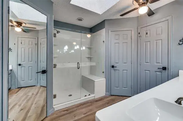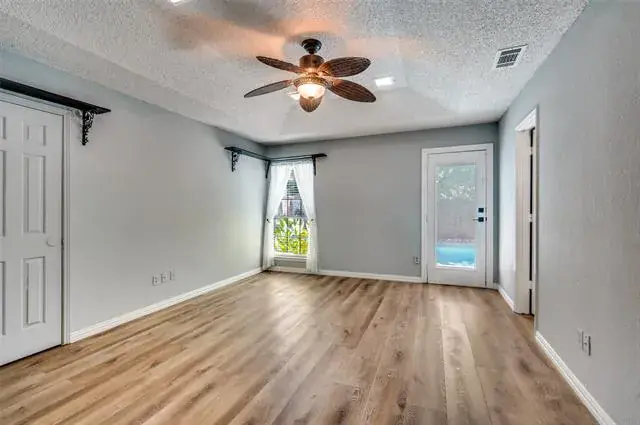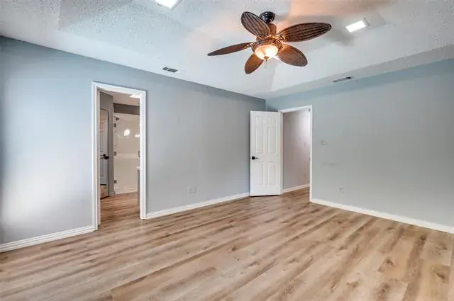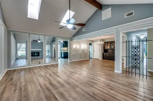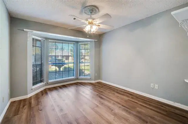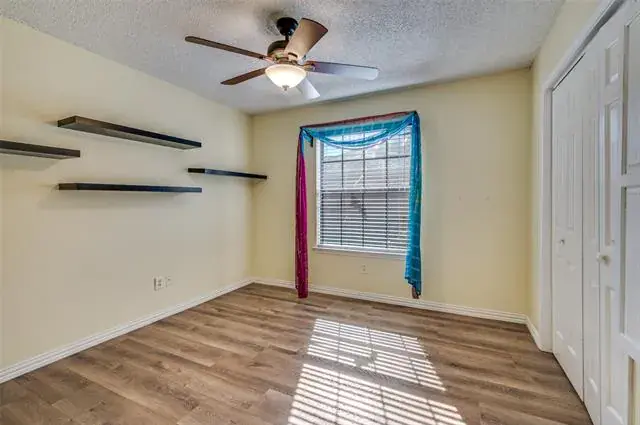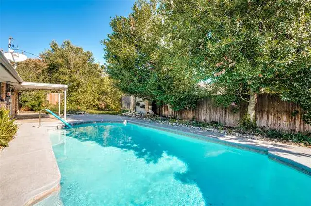 Discover this 3-bedroom, 2-bath home offering luxurious features and an unbeatable DFW location. The expansive living room is the heart of the home, boasting a wood-burning fireplace and stylish picture-frame wainscoting, flowing seamlessly into the spacious dining room.The primary suite is a private retreat, featuring a double vanity, three walk-in closets, and direct access to the backyard oasis. Step outside to a beautifully manicured yard with artificial turf surrounding a sparkling diving pool and a tranquil water feature. A handy storage shed provides extra space. Centrally located between Dallas and Fort Worth, you’ll enjoy quick access to endless shopping and dining amenities. This exceptional home provides a perfect blend of comfort, style, and convenience. Schedule your showing today!