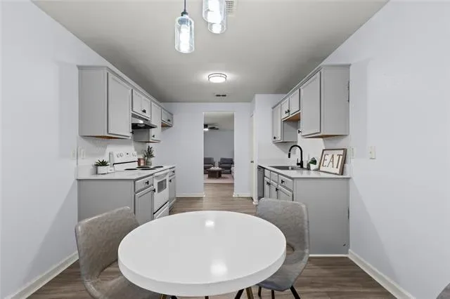 Situated just minutes from UTA, the Entertainment District, Six Flags, and Epic Waters, this beautifully updated home offers modern living in a prime location. Enjoy sleek, upgraded vinyl wood flooring throughout—no carpet anywhere! The kitchen and bathrooms feature gorgeous quartz countertops, complemented by stylish matte black lighting, mirrors, and fixtures for a contemporary touch. Fresh, neutral paint throughout completes the clean and elegant look. Low maintenance backyard with enough space a cute garden. Don’t miss this move-in-ready gem!