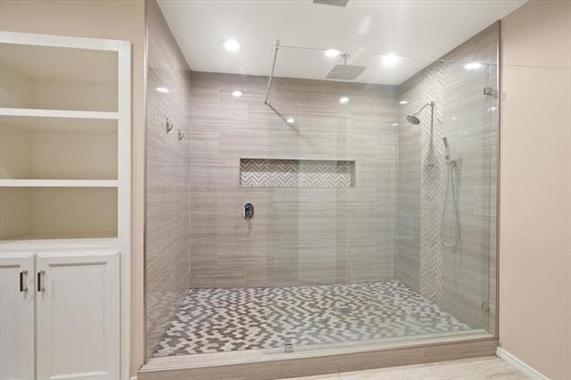 Four generous bedrooms and four full bath, offering privacy. The first-floor suite features a roll-in shower — a rare and thoughtful touch ideal for multigenerational living. A dedicated media room, pre-wired for surround sound and LED lighting, rounds out the interior with a true wow factor.
