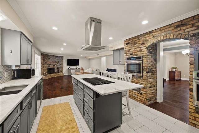 Inside, gleaming hardwood floors and classic crown molding set a polished tone from the moment you walk in. The chef''s kitchen is the heart of the home — shaker cabinets, marble backsplash, granite countertops, stainless steel appliances, and a large center island that''s made for gathering.