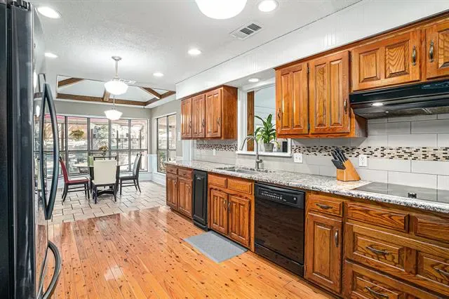 Cathedral Ceiling(s), Decorative Lighting, Eat-in Kitchen, Granite Counters, Natural Woodwork