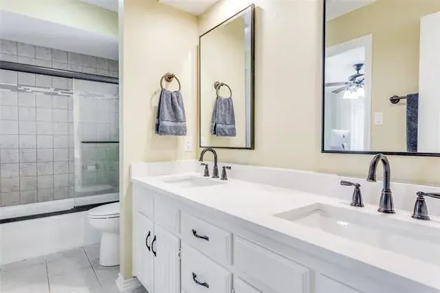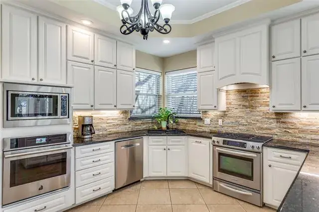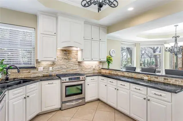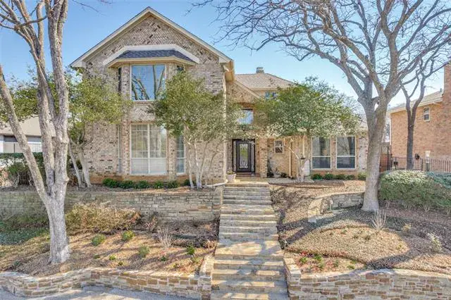 Located in the prestigious Parkway North community, this exceptional golf course home backs directly to the lush green of Hole 7 of the Texas Rangers Golf Course, offering peaceful wooded views. From the moment you arrive, the circular drive, flagstone steps, and stunning iron front door set a tone of timeless elegance. Inside, a grand foyer with travertine flooring opens to expansive living spaces with rich wood floors and a striking gas fireplace. Picture windows frame breathtaking views of the golf course and stone patio creating seamless indoor-outdoor living ideal for entertaining. The oversized flagstone patio and covered tile patio provide a private backyard retreat rarely found in today’s market. This impeccably maintained 4-bedroom, 4-bathroom single-family home features a fully remodeled kitchen and updated bathrooms. The chef’s kitchen is designed for both function and style, complete with double convection ovens, microwave, gas cooktop, wine refrigerator, walk-in pantry, and abundant cabinetry. The primary suite is a true sanctuary, featuring a second home gas fireplace and a sitting area with tranquil views. The oversized, beautifully updated primary bath offers spa-like luxury. A second bedroom with full bath is conveniently located downstairs that is ideal for guests or multigenerational living. Upstairs, two additional bedrooms and two full baths accompany a spacious game room, study loft, and a private office with double glass door entry, wood flooring, built-ins, and picturesque views. Perfect for those seeking a work-from-home office with a view. A dramatic staircase with iron spindles adds architectural interest. The roof was replaced in February 2026 offering peace of mind. Ideally situated just minutes from DFW International Airport, AT&'T Stadium, Globe Life Field, and premier dining and entertainment, this home combines luxury golf course living with unmatched convenience.