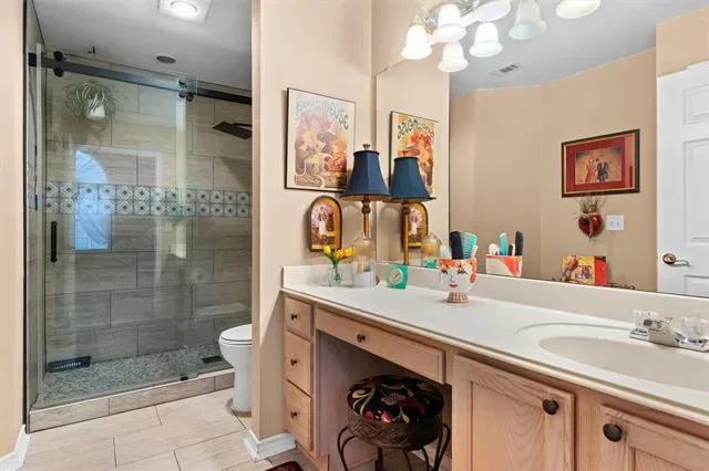 IMMACULATE & BEAUTIFULLY UPDATED MOVE-IN-READY 2-2 CONDO – GATED PRIVATE CONDOMINIUM COMMUNITY in convenient Arlington location! Easy access to DFW and all amenities! Living Room w Fireplace & adjacent Solarium-Second Living Room; Dining & Eat-In Kitchen with Granite Counters & Lovely backsplash; Recently added Disposal, Dishwasher, Electric Cooktop & Microwave; Updated all Tile Double Shower in Primary Master with Rainfall Shower Head; Huge Walk In closets & Ensuite baths for Two Primary Bedrooms;Full size Utility with Extra Pantry; Lovely Walking trails around scenic pond with fountain; Amenities Center with Pool, Work-out Room, Conference and Game Room; Refrigerator Negotiable; See Addenda for HOA Rules & Regulations; Call for appointment to show! PRICED TO SELL!