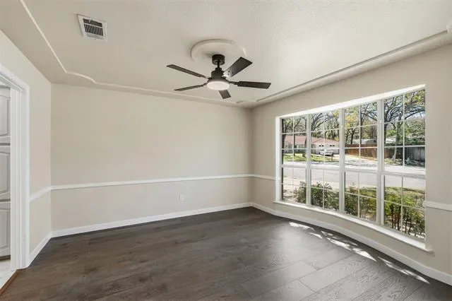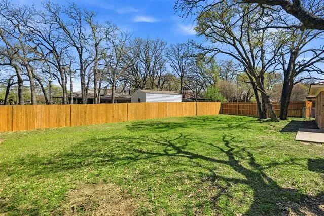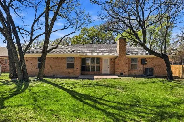 Completely reimagined and move-in ready, this beautifully renovated single-story home sits at the end of a quiet cul-de-sac in a prime Arlington location—just minutes from schools, shopping, dining, and the area’s world-class sports venues. Thoughtfully updated from top to bottom and inside and out, every detail has been refreshed to create a home that feels brand new while maintaining its classic charm. Fresh interior and exterior paint set the tone, while the tile roof has been repaired, painted, and sealed to enhance both durability and curb appeal. Step inside to discover new engineered hardwood flooring throughout the living areas and new tile in the wet spaces, complemented by updated lighting, ceiling fans, electrical outlets, and modern hardware throughout the home. The flexible floor plan begins with a formal dining room that can easily serve as a home office. The main living area offers a warm gathering space anchored by a brick wood-burning fireplace, along with a tucked-away wet bar and convenient pass-through to the kitchen—perfect for entertaining. The fully updated kitchen features new quartz countertops, modern fixtures, a new cooktop, microwave, and dishwasher, plus abundant cabinetry and prep space. It opens to a sunny breakfast area for casual dining. Privately situated in its own wing, the primary suite offers a peaceful retreat with dual sinks, a walk-in shower, and a spacious walk-in closet. Two additional bedrooms and a full bath are located on the opposite side of the home, creating ideal separation for family or guests. Step outside to a generous patio space designed for outdoor entertaining, all surrounded by a newly installed wood privacy fence. Additional upgrades include a serviced garage door system and an updated sprinkler controller and system for easy maintenance. Homes with this level of renovation and location rarely come available—schedule your private showing today and see the transformation for yourself.