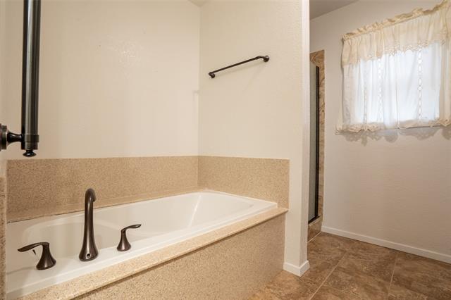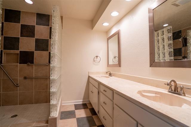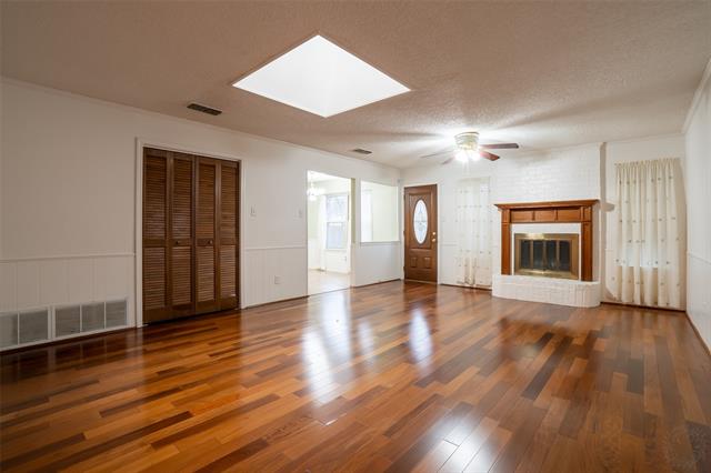 The spacious living room offers a cozy wood-burning fireplace and beautiful natural lighting from the overhead skylight. Just off the kitchen, a built-in wet bar creates the perfect space for entertaining guests. All bedrooms include walk-in closets, ceiling fans, and comfortable carpeting. The secondary bathroom offers double vanities, dual mirrors, and a glass enclosed walk-in shower, making busy mornings easy. The primary suite provides a relaxing retreat with an en-suite bathroom featuring a soaking tub, separate shower, and large walk-in closet. Step outside to enjoy a beautifully fenced backyard shaded by mature trees—perfect for relaxing or hosting gatherings. Additional features include a two-car garage with openers and a lifetime roof. A wonderful opportunity to own a move-in ready home in a great Arlington location that should qualify for a variety of financing options.