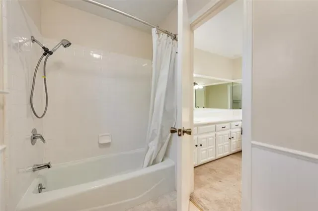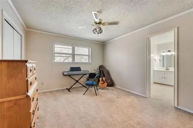 The large primary bedroom boasts vaulted ceilings, elegant crown molding, a generous walk-in closet, and a relaxing jetted tub in the ensuite bath. A second downstairs bedroom with its own attached bathroom provides convenience and flexibility. Renovated in 2025, the upstairs offers two additional bedrooms connected by a Jack-and-Jill bathroom with dual sinks, two sizable walk-in closets, and full-length mirrors—an ideal retreat for kids. Storage is abundant throughout the home, including a hallway leading to the garage with a half bath and a separate laundry room, thoughtfully tucked away from main living areas. The backyard is a private oasis featuring a refreshing pool shaded by mature trees—perfect for hot Texas summers. There’s plenty of patio space for seating and BBQs, plus a shed for yard equipment or extra storage. As an added bonus, the roof is only five years old and the electric panel is brand new (2026). This charming property blends comfort, style, and functionality—ready to welcome you home.
