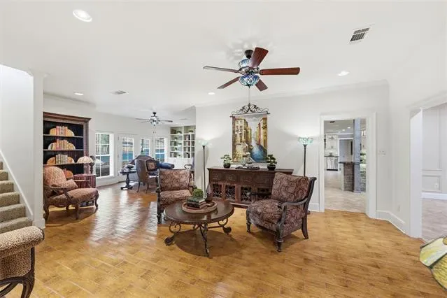 Discover this stunning, fully renovated open-concept home in the desirable Prestonwood Estates neighborhood of Arlington, Texas. Spanning 4,200 sq ft in a versatile 1.5-story layout, this 5-bedroom, 4-bathroom residence offers expansive, light-filled spaces perfect for modern families and effortless entertaining. An open-concept design seamlessly connect the living, dining, and gourmet chef’s kitchen. Cozy fireplaces in both the sophisticated office or sitting room and living room create warm, inviting spots for relaxing evenings or grand gatherings. The chef-inspired kitchen shines with luxurious granite countertops, high-end stainless steel appliances, a dedicated wine fridge, wet bar, and premium custom details. Beautiful stained-glass lighting adds elegance and warmth throughout the main level. Upstairs, the flexible layout provides private retreats with a spacious secondary bedroom and the substantial storage closet ideal for entertainers and decorators. The large side yard holds a dream playhouse that every child will enjoy! Located just off I-30, you’ll enjoy quick access to the entire DFW Metroplex, downtown Fort Worth, Dallas, and the vibrant Arlington Entertainment District' including AT&'T Stadium, Globe Life Field, and Six Flags. This fully updated home blends timeless sophistication with modern upgrades in a beautiful, tree-lined neighborhood. A rare opportunity in Prestonwood Estates!
