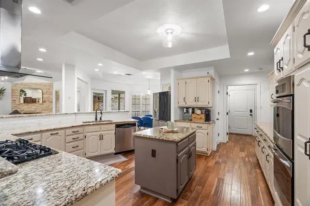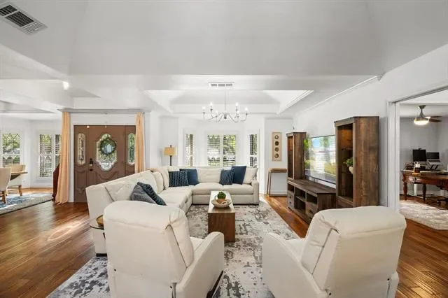 Step inside to find rich hardwood floors flowing throughout a spacious single-story design. The home has been completely reimagined with walls removed to create a seamless open-concept living space that connects the kitchen, dining, and living areas. The result is a light-filled, inviting environment that is perfect for both everyday living and entertaining.