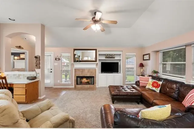 MOVE-IN READY 3-2-2 with NO HOA in Mansfield ISD! Beautifully maintained home located in a quiet, established neighborhood. This property features an open floor plan with split bedrooms, offering both functionality and privacy. The spacious living area is filled with natural light and enhanced by elegant archways and a neutral color palette. The open-concept kitchen provides ample cabinetry and generous counter space, ideal for everyday living and entertaining. The primary suite includes two walk-in closets and an ensuite bath with a separate shower and jetted tub. New carpet has been installed in the living areas and primary bedroom. Enjoy the large backyard with an oversized covered patio—perfect for outdoor relaxation or entertaining. This move-in ready home offers comfort, space, and the added benefit of no HOA. Welcome Home!