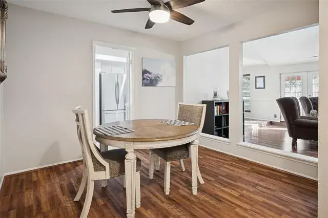 Great location on this beautiful home at the end of the culdesac. This home is within walking distance to Randol Mill Park. Sellers have added insulation to attic and recently had home exterior painted. Thermal windows throughout home. Recessed lights added in kitchen. Laminate wood in entry, living area and dining area. Carpet in bedrooms. Upon entering home your eyes will be drawn to beautiful brick fireplace and the windows overlooking backyard. Good sized covered patio and lots of yard for the children to play or for homeowner to garden. Primary bedroom has skylight making the room very light and bright. Ensuite bathroom with tub shower combination and single sink in dressing area. Good sized walkin closet.