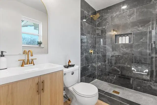 Both bathrooms have been thoughtfully redesigned, featuring custom niches that add a touch of luxury. Every detail has been considered, with all plugs, outlets, and switches replaced to create a contemporary vibe.
