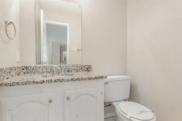 The heart of the home lies in the eat-in kitchen, where granite countertops, crisp white cabinets and a window looking into the back patio create a cook’s paradise. The spacious breakfast area flows seamlessly into the family room, complete with a brick veneer fireplace. Access the private back patio through the sliding door, perfect for morning coffee or evening relaxation.