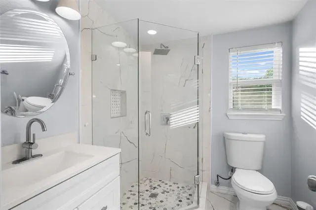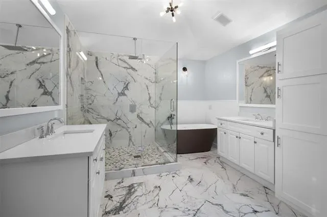 Inside, a spacious and well-designed floor plan is filled with natural light and versatile living areas tailored to today’s lifestyle. The home features spa-inspired bathrooms, fresh interior paint, stylish designer accent walls, and a beautifully updated kitchen complete with quartz countertops, generous cabinetry, and abundant prep space. The kitchen flows seamlessly into the dining and main living areas, creating an inviting atmosphere for daily living and gatherings alike.