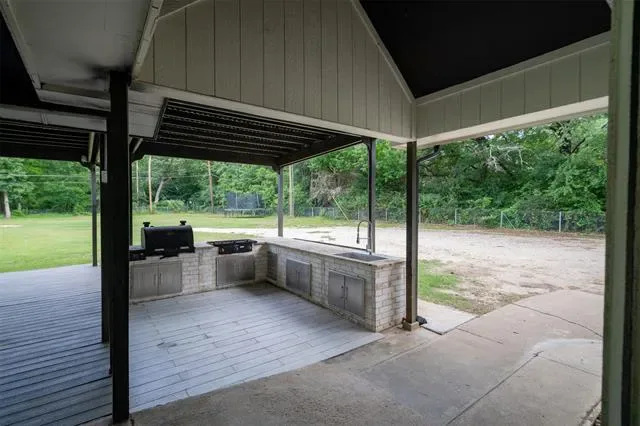 Designed with entertaining in mind, the outdoor living space features an expansive covered patio with a full outdoor kitchen, ceiling fans, and generous seating areas ideal for hosting year-round. A large workshop at the rear of the property adds even more versatility for hobbies, storage, or projects.