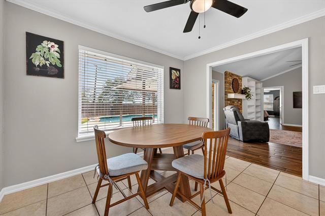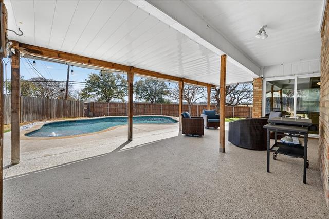 Nestled on a quiet cul-de-sac in the established Shady Park Addition of Arlington, beautifully maintained one-story home offers 4 beds, 3 full baths w comfortable living space. Step inside to warm and inviting living room featuring vaulted ceilings w a decorative beam, built-in shelving, fireplace w gas logs plus raised hearth and wet bar. Tile flooring runs throughout home providing durability, easy maintenance. Kitchen is bright and functional w granite counters, white cabinetry, stainless steel appliances, a gas range and a cozy eat-in dining overlooking the backyard oasis. Split-bedroom layout provides privacy, flexibility. Spacious primary suite includes ensuite bath w dual sinks, separate vanities, linen closet and shower. Three additional bedrooms and two full baths accommodate family and guests comfortably. Valuable major updates include roof 2018, water heater 2020, HVAC 2023 and pool addition 2021. Backyard is designed for enjoyment w covered patio and private pool creating perfect setting for relaxing or hosting during Texas summers. Wood privacy fence, sprinkler system, and side-entry garage with opener complete the package. W thoughtful updates, functional space and backyard retreat' 2215 Shady Meadow Court delivers comfort, convenience and lasting value in the heart of Arlington. Conveniently located approximately 25 minutes from DFW International Airport w easy access to major highways, shopping, dining and entertainment – the location truly makes everyday living and travel simple. If you’ve been searching for a well-cared-for home with great bones and a backyard oasis' this one truly delivers!