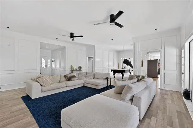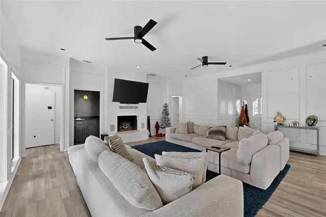 Step inside to discover ample interior living space, including not only a large family room with a cozy fireplace and wet bar, but also an entire second living area, perfect for relaxation or gatherings. The kitchen shines with natural light and features a brand new double oven, alongside a convenient microwave integrated into the refrigerator, making meal prep a delight.