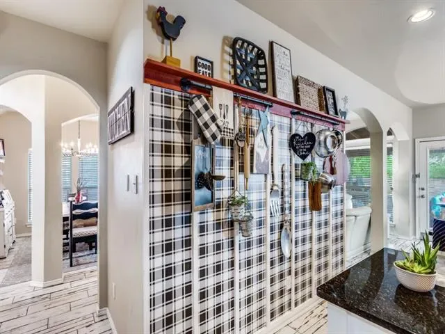 BEAUTIFULLY UPDATED HOME IN GATED COMMUNITY NEAR LAKE ARLINGTON, GREAT CURB APPEAL! Situated on preferable North-South facing lot, on gated cul-de-sac street! Numerous updates, too many to mention here, but be sure to see pictures! 2 living, 2 dining 4-bedroom home with AMAZING, NICE, HUGE covered patio and deck, 2 ample seating areas! Large Living area features gas fireplace, and wall of windows overlooking back yard, patio! Island kitchen with storage includes gorgeous cabinets, granite counters, tiled back splash, gas cooktop, pantry! Adorable children’s nook for their own little private space, or would be great for luggage storage! Large primary bedroom with room for desk or sitting area! Primary Bathroom has 2 sinks, vanity, large oval tub with separate shower! Minutes to highways and plenty of shopping, restaurants. 15 minutes to downtown Fort Worth, 35 minutes to Dallas, 20 minutes to DFW airport and UTA University. THIS ONE IS A BEAUT, CLARK – expected to sell quickly, so don’t miss out! (several items and furniture for sale – ask listing agent)