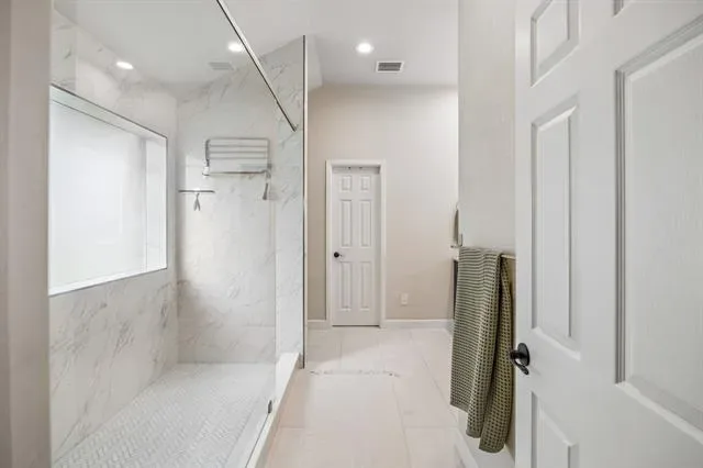 The primary suite is your private retreat, boasting an oversized shower with a rain shower head system and a dual vanity, complete with a Smart Mirror featuring weather updates and integrated lighting.