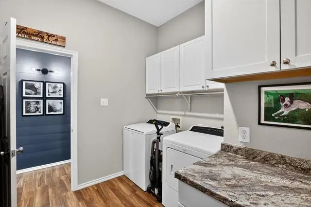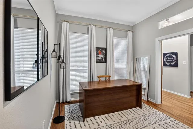 The heart of the home, the kitchen, offers plenty of cabinet space, a large breakfast bar for casual meals or homework time, stainless steel KitchenAid appliances, and a walk-in pantry. It opens seamlessly to the family room and breakfast area, making it easy to stay connected while cooking or entertaining.