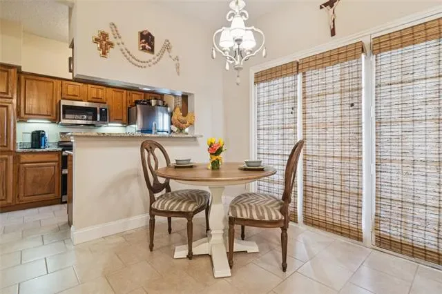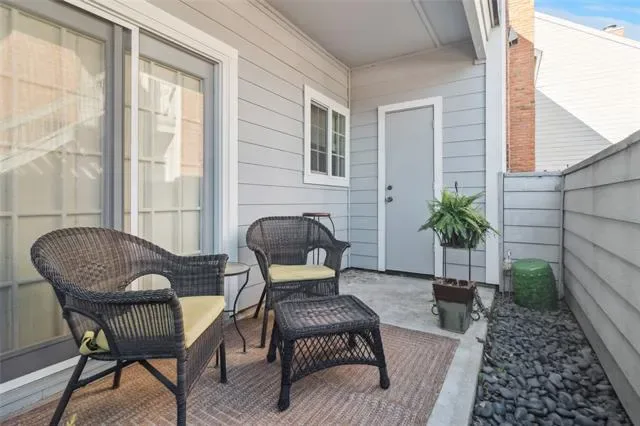 Charming Condo on the first floor of St. James Place and is conveniently located to restaurants and the entertainment district. The inviting living area offers a beautiful brick fireplace, light ceramic tile flooring , woven roman shades on windows and atrium door which leads you out to the patio. The dining room has a beautiful chandelier and is open to a galley kitchen with granite countertops, stainless sink, updated stainless double ovens with smooth top cooktop and microwave. In the hallway is a utility closet for full size washer and dryer. It offers a beautiful tranquil bedroom with vinyl plank flooring, large walk in closet. Large spa like bathroom with granite countertops and built in cabinets for storage and a good size shower. Offers Covered parking.