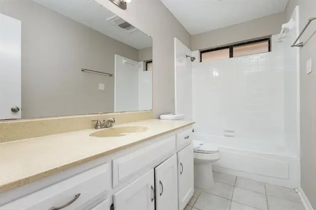 This home features living and dining combo flows into the kitchen, complete with granite countertops and white cabinetry. The primary bathroom showcases a spacious dual-sink vanity with granite countertop, plus both a separate shower and soaking tub.