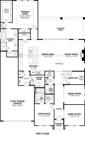 Located in Arlington ISD part of the Sterling Greene community, the neighborhood offers excellent opportunities in education and an added sense of comfort with a gated entrance. This stunning 2-story home provides a comfortable open floorplan with an Extra Suite, ideal for extended stay guests. A private home office followed by an intimate dining room is great for entertaining. The kitchen features a spacious island and overlooks the well-lit great room. A cozy dining area allows access to the covered patio, great for outdoor living. In from the garage, a HovHall and laundry room keep your home tidy. The primary suite with private bath and spacious walk-in closet. A versatile loft, a media room, and 3 additional bedrooms with hall bath allow for comfort for all.