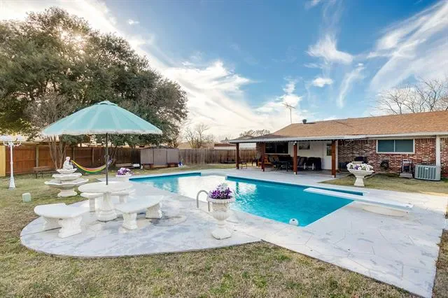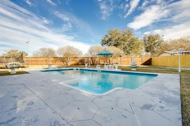 Step outside and you’ll find the real showstopper — an extra-large, private backyard that feels like your own personal oasis. Relax or entertain around the beautiful pool, perfect for sunny Texas days and summer gatherings. The spacious covered patio by the pool is ideal for morning coffee, evening sunsets, or weekend BBQs.