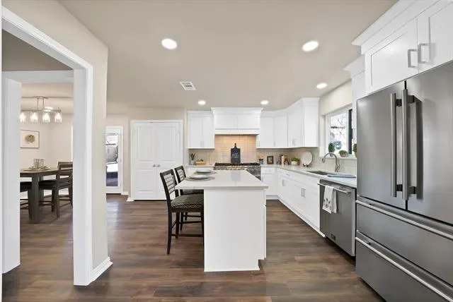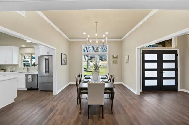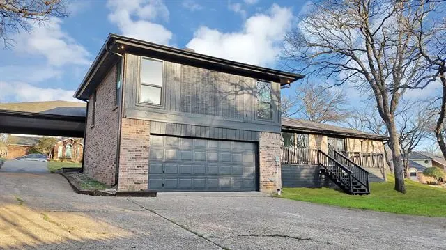 Newly renovated custom home located in Southwest Arlington in the desirable Tiffany Park neighborhood. Conveniently located just minutes from I-20, I-30, 820, and Highway 360, making it ideal for commuters. Situated one block from Lake Arlington and within approximately two miles of two public boat ramps. This beautifully updated home features a chef’s kitchen, commercial grade gas range with 8 burners and 2 ovens, two new HVAC systems, new roof shingles installed on 11-25-24,new flooring, new lighting, all new appliances that convey, 3 full bathroom remodels, all new faucets, floor plan changes in the remodel, New cabinetry throughout, removal of all insulation and new insulation blown in, 2 new water heaters, new low E double pain windows and new doors through out the home. The open-concept layout offers abundant natural light with spacious living and dining areas on the main level. A large new deck spans the back of the home, perfect for outdoor entertaining. The main level includes the primary bedroom along with two additional bedrooms, kitchen, living and dining areas. The smaller living area can be a large office. The second level offers 2 large closets and can be a second primary suite or an over sized game room with full bathroom, offering flexible living arrangements. All the rooms are oversized and this home has tons of storage. The garage is oversized and the driveway is extra long so lots of additional parking and a porte-cochere off the kitchen. Additional updates include a new sprinkler system and newly installed St. Augustine sod. The home sits on a beautiful lot with mature trees in a quiet, established neighborhood. Schools zoned for Ditto Elementary, Young Junior High, and Martin High School, this home is also a quick commute to private schools such as The Oakridge School and Pantego Christian Academy. Conveniently located near shopping, dining, and major thoroughfares. This property combines elegance, comfort, and exceptional location.