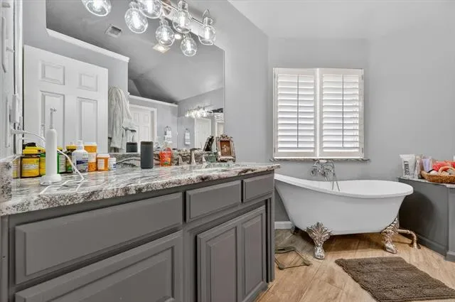 Built-in Features, Cable TV Available, Chandelier, Decorative Lighting, Eat-in Kitchen, Granite Counters, Open Floorplan, Pantry, Vaulted Ceiling(s), Wainscoting, Walk- In Closet(s)
