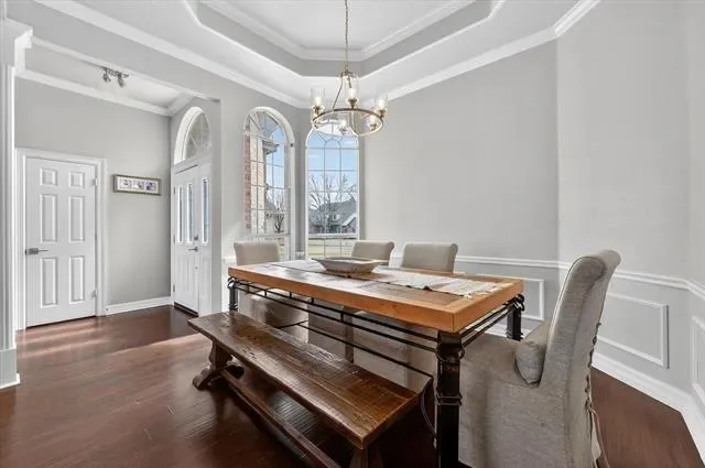 Scraped ceilings showcase updated lighting, ceiling fans, door hardware, faucets, and outlets throughout the home, complemented by elegant tray ceilings that enhance the overall design.