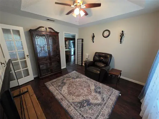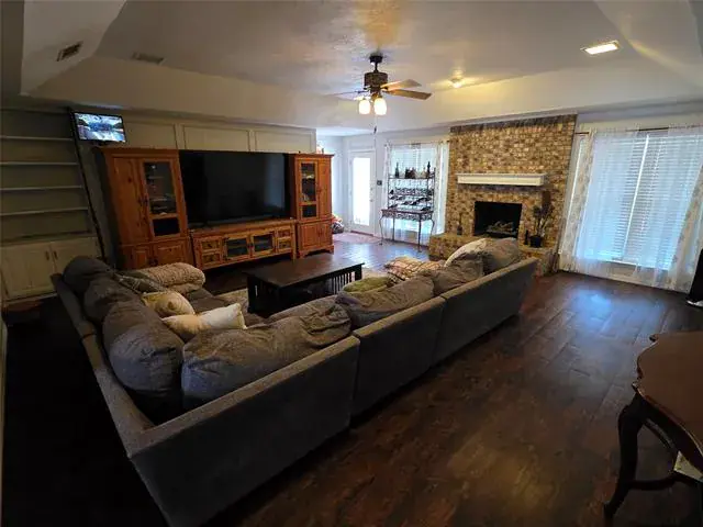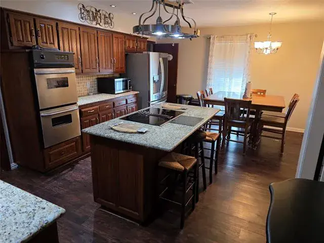 Step outside to enjoy a large, fenced swimming pool, ideal for Texas summers. The garage is fully insulated and climate-controlled, equipped with heating, air conditioning, and a drop-down screen—perfect for a man cave, workshop, or hobby space. It is also screened-in and can easily be converted back to a two-car garage if desired.