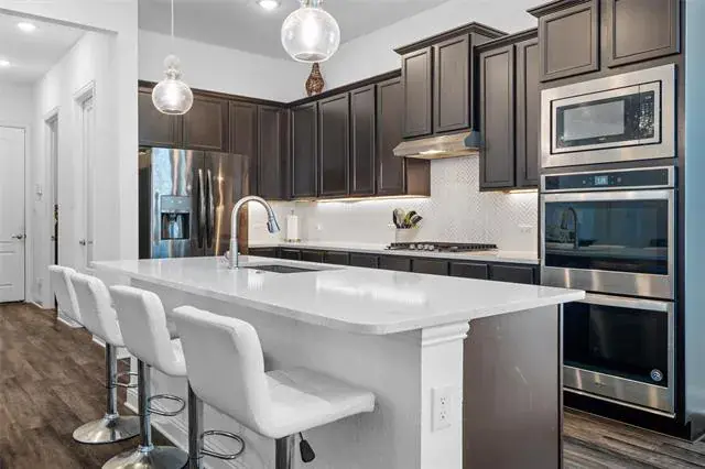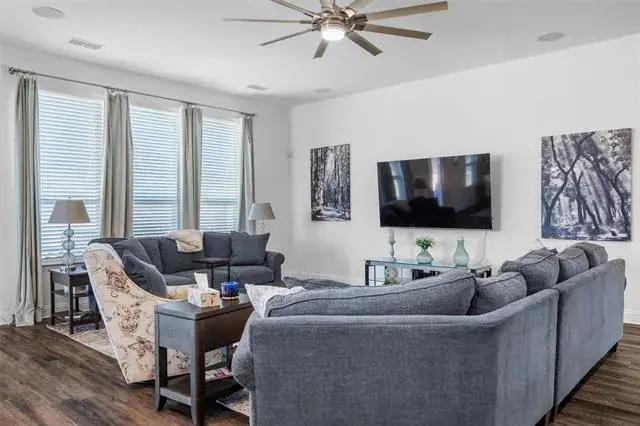 Welcome to 7201 Rustic Rock Road located in the very popular Twin Hills addition in SW Arlington, Mansfield schools. As a bonus Carol Holt Elementary is only moments away. This pristine single level floorplan offers an outstanding open layout and an unbeatable location close to shopping ,dining and entertainment. Step inside to find an expansive living space designed for both everyday comfort and entertaining. The open concept flow allows for a seamless movement between the main living area and kitchen creating an ideal setup for gatherings and hosting. Our stunning island kitchen will yield many holiday memories, we provide quartz countertops, gas cooking, double oven, stainless steel appliances, endless counter and storage space, a 7 foot deep walk in pantry and an inviting eating area with a sweeping view of the backyard. Our split primary retreat offers an oversized footprint with ample space for todays largest bedroom sets with room to spare, our ensuite bath is accented by 2 vanities, stand alone shower, dressing area and an oversized walk in closet. Our split secondary bedroom area offers great floor space, storage space and a little peace and quiet for Mom and Dad. Working from home our private office will fill the bill nicely, would also work great has a home school area, 2nd living area or even a cozy media room. The oversized back yard offers plenty of room to relax, entertain, or just create your own dream outdoor oasis, the backyard is accented by covered patio, open patio and storage building. Do not miss out on this fantastic opportunity to own a spacious home in an established neighborhood with convenience, comfort and room to grow.