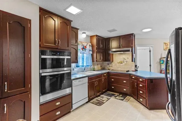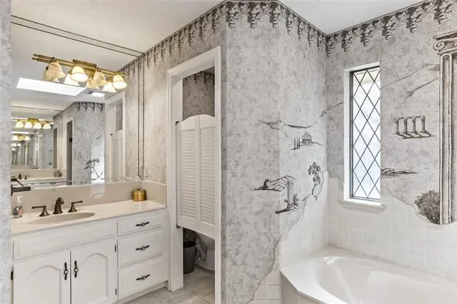 Built in 1979, the home embraces its character with a classic swinging-shutter wet bar—ideal for entertaining and everyday living. The secondary bathroom was thoughtfully updated in 2021, and the primary suite features a Hollywood-style bath that adds vintage flair. A 50-year roof installed in 2021 provides peace of mind for years to come.