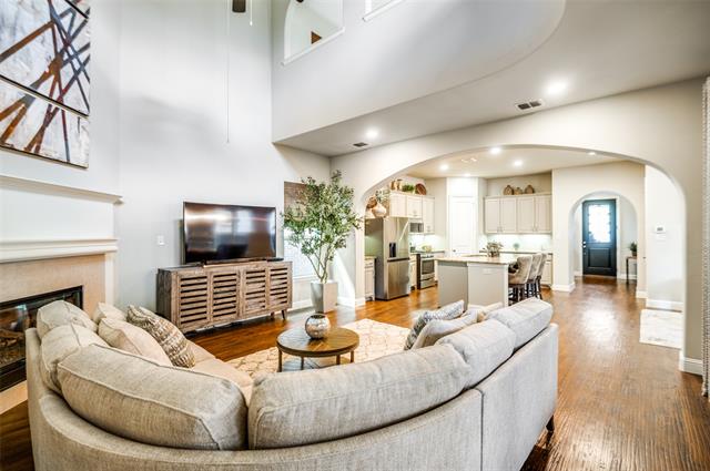 Welcome to this stunning 4-bedroom, 3 full-bath home located in the highly sought-after master-planned community of Viridian . This home features an open-concept floor plan with elegant architectural arches and a spacious upstairs loft that serves as a second living area or family room. Beautiful hand scraped hardwood floors flow throughout the main living spaces. The gourmet kitchen is equipped with granite countertops, a large center island, and an oversized walk in pantry perfect for both everyday living and entertaining. Enjoy two generous living areas, including a downstairs living room and an upstairs space ideal for a game room, media room, or additional lounge area. The expansive primary suite offers a relaxing retreat with a double vanity, soaking tub, and a large walk-in closet. All secondary bedrooms feature ample closet space. The fourth bedroom is conveniently located on the main floor and can also function as a home office, with access to a full bath. Step outside to an extended flagstone, covered patio complete with pull-down shades and dual ceiling fans perfect for outdoor entertaining. The backyard features low maintenance turf for year-round greenery. The oversized 2.5 car garage includes epoxy flooring with a lifetime warranty, space for a golf cart or additional storage, and three overhead 4×8 storage racks. An extended driveway provides extra parking. Residents of Viridian enjoy access to top tier amenities, including over 20 neighborhood parks, resort style pools with waterfalls, pickleball and tennis courts, scenic walking and biking trails connected to River Legacy Park, a sailing center, and stocked fishing ponds. Zoned to highly rated Viridian Elementary School.