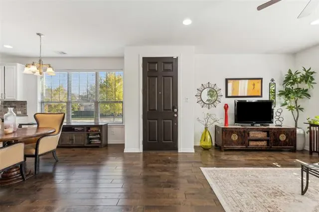 Beautiful Craftsman style townhouse that is meticulously maintained and located in the award winning master planned community of Viridian. The two story home is a sought after end unit and situated on a corner lot with a large front covered porch. The first floor features an open concept floor plan with an abundance of windows and natural light, a large family room with wood floors, dining and a kitchen that offers granite, island, stainless steel appliances, gas range and ample cabinets. Upstairs offers a second living area-game room with built-in cabinets and separates the secondary bedrooms from the master. The spacious master offers double vanities, a large walk-in shower and a huge walk-in closet. Rear entry garage. The community has an abundance of resort style amenities from swimming pools, walking trails, private dock, sailing center, clubhouse, dog park, tennis and pickleball courts, and community events. Perfect location..centrally located in DFW, easy access to hwys, shopping, and just minutes to Globe Life Field, AT&T Stadium, and DFW Airport.