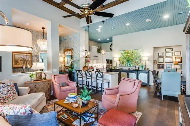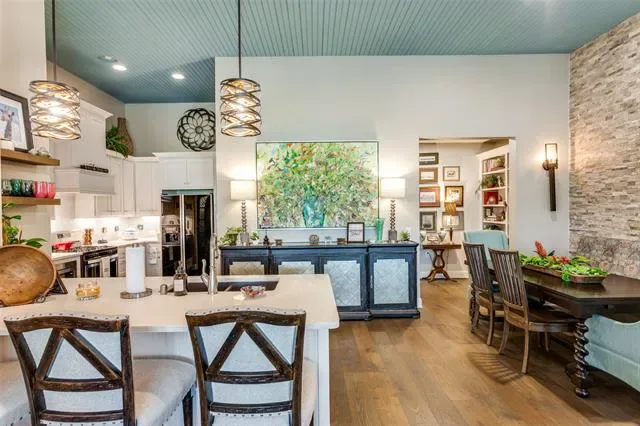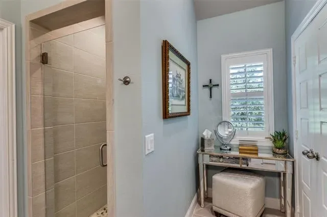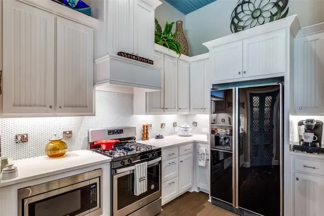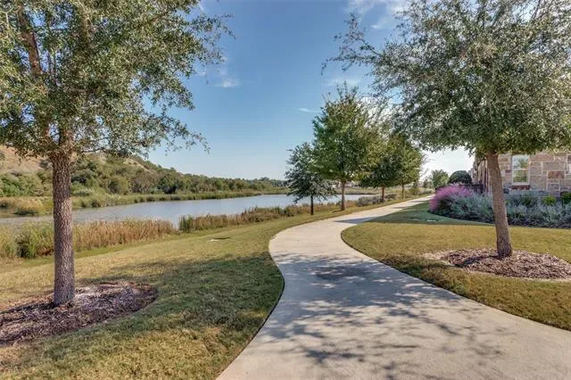 Creekside living in Viridian, with a peaceful view and a quiet setting. Thoughtful designer touches bring a calm, cohesive feel throughout this beautiful 2 bedroom, 2 bathroom townhome. Start your mornings waking up to the view of a tranquil greenbelt and waterway from the master bedroom. As you step into the living area, abundant natural light flows through plantation shutters to highlight tall ceilings, accentuated by custom headboards and exposed beams. As you make your way into the kitchen for your morning coffee or tea, you’re greeted by custom pantry doors, updated lighting and custom backsplash featuring handmade Italian tile from Venice that elevate the space. Next, your led into the adjacent study, complete with a built-in desk and cabinetry, to catch up on your day before enjoying a peaceful morning on your extended, covered patio to enjoy the view. Your guests will appreciate a fully refreshed bathroom with an enlarged tub, new hardware and custom tile. Life here runs easy, with access to community pools including lap lanes, lake access with a sand beach and the Viridian sailing center, tennis and pickleball courts, miles of connected trails and parks with River Legacy access. With HOA covering exterior maintenance, irrigation, and landscaping, this home truly offers a life of leisure. Reach AT&T Stadium, Globe Life Field, Texas Live, Six Flags, and Texas Rangers Golf Club all within 10-15 minutes. This is the home that comes with the lifestyle you’ve been looking for!