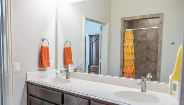 Primary suite features French doors, dual sinks, a large closet and a walk-in stone shower with a seating area. Secondary bedroom features a large walk-in closet. Utility room located in hallway. Washer, dryer, and fridge included with sale. Brand new paint throughout house and inside garage, brand new carpet, new blinds, and new microwave.
