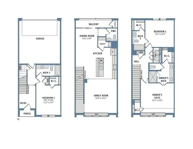 This three-level townhome features a flexible and functional layout. The first floor includes a private bedroom with en-suite bath and walk-in closet—ideal for guests, a home office, or multigenerational living—set against tranquil garden views.