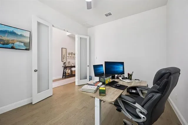 The primary suite is a true retreat with a stunning accent wall, luxurious ensuite bath with double vanities, and ample space to unwind. The stylish kitchen features quartz countertops, stainless steel appliances, and an open layout ideal for hosting. Custom motorized blinds in the living room, primary bedroom, and patio, with farmhouse style blinds throughout the remainder of the home.